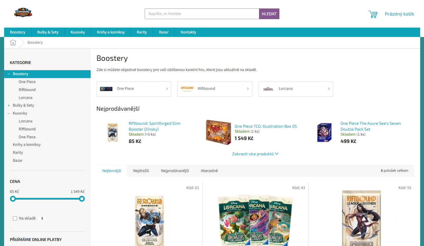 Boostery i kusovky karetky ze světa League of Legends na našem eshopu